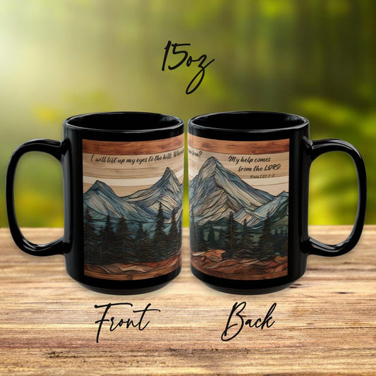 Bible Verse Mountain Mug Christian Coffee Cup with Scripture Psalm 121 Inspirational Faith Gift Wooden Aesthetic Useful Gift for Friends