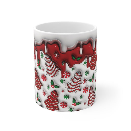 3D Image Christmas Tree Cakes Inflated Coffee Mug, Christmas Snack Cakes Puffy, Xmas Coffee Puffy Mug, Milk Cookies For Santa, Xmas Puff Mug