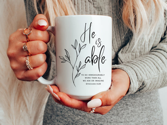 Christian Mug, Scripture Coffee Mug, Bible Verse Coffee Mug, Christian Gifts, Inspiration Coffee Mug, Positive Coffee Mug, He is able