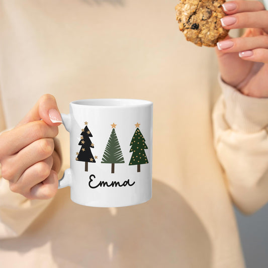 Christmas Tree Mug, Christmas Mug, Custom Mug, Custom Name Mug, Custom Coffee Mug, Personalized Gift, Winter Mug, Snowy Mug, Xmas Gift