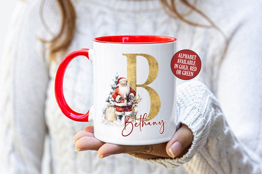 Personalized Christmas Monogram Mug Festive Holiday Ceramic Mug with Santa Hat Design Custom Cup