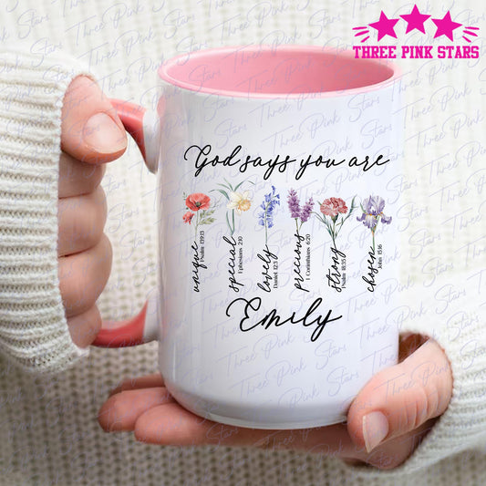 Personalized Christian Mug, Bible Verse Mug, God Says You Are E5794