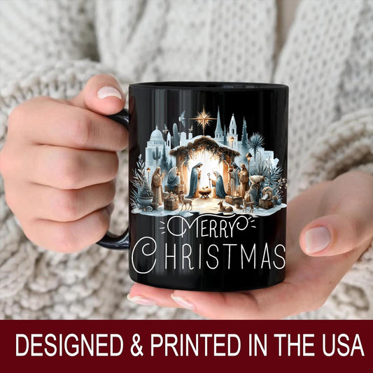 Merry Christmas Baby Jesus Christ Mug – Nativity Scene with North Star Christian Coffee Cup
